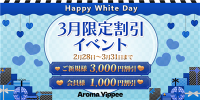 【3月限定割2月28日〜3月31日まで】ご新規様90分18,000円→→15,000円120分24,000円→→21,000円会員様90分18,000円→→17,000円120分24,000円→→23,000円-----------------------------------------------------------------AromaYippeeアロマイッピー業時間:12:00~翌5...続きを見る